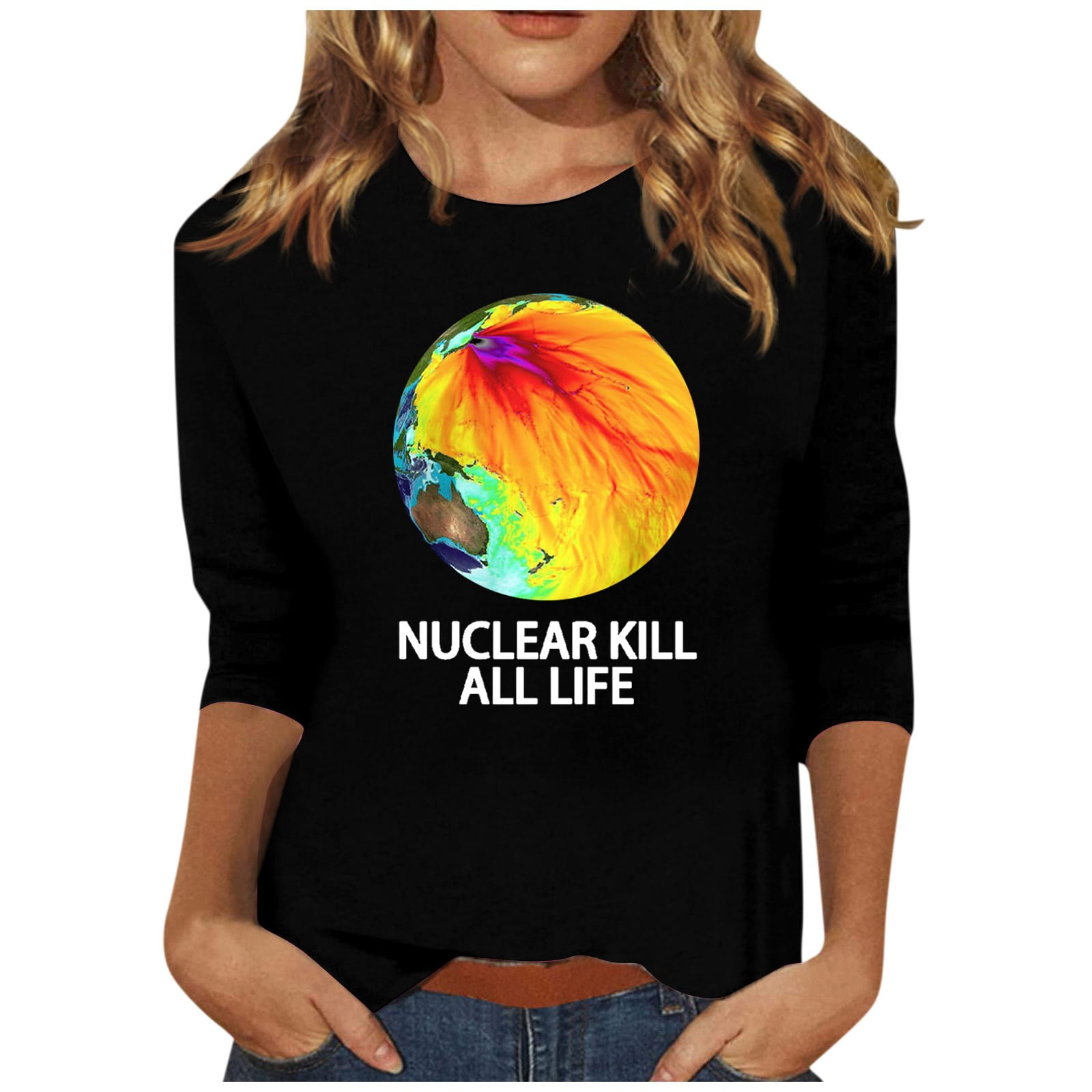 Source : www.aliexpress.comSksloeg Women’s Tops 3/4 Sleeve Graphic Oversized Tees Stop